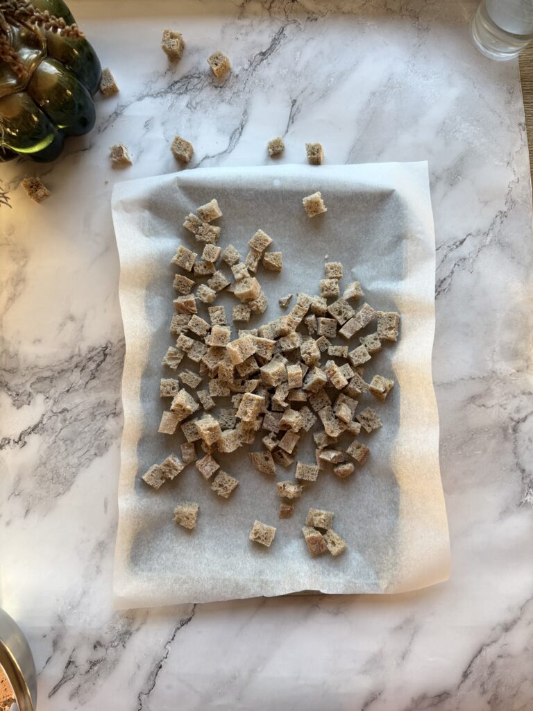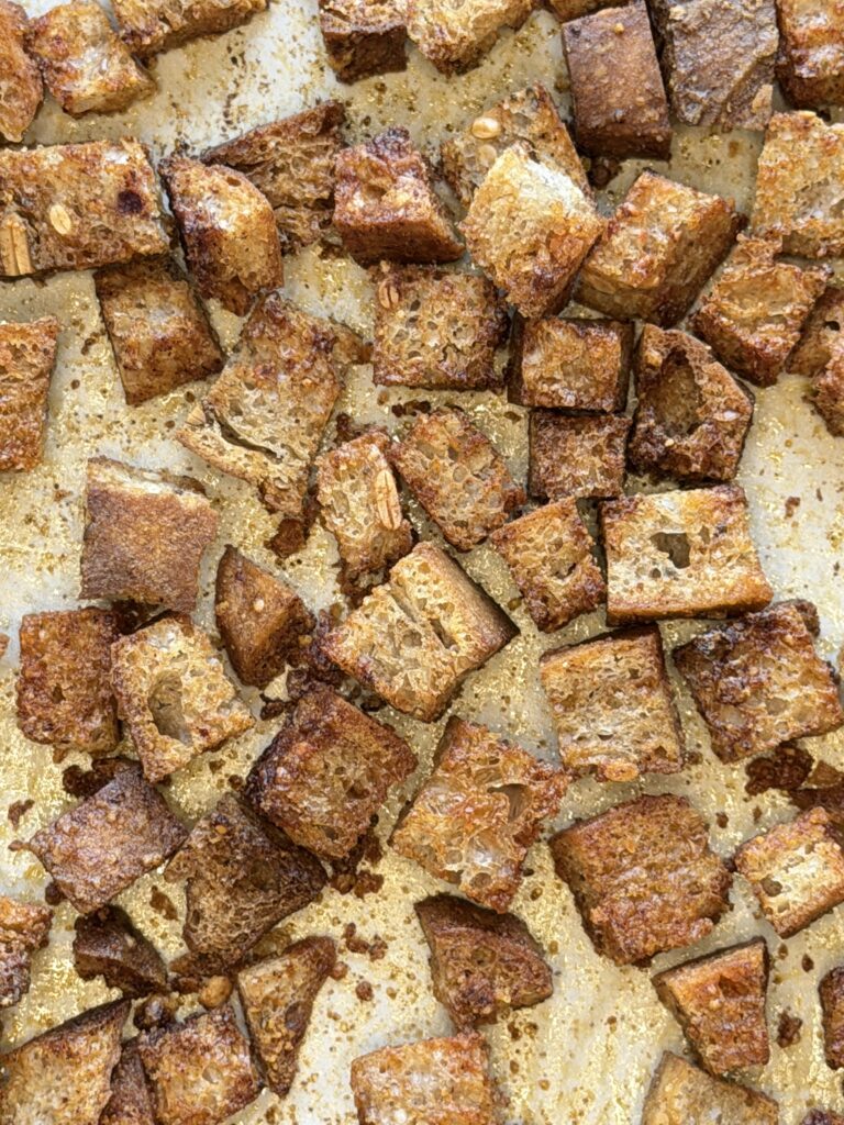 Když doma zůstane starší chléb, je to ideální příležitost využít ho chutně a bez plýtvání. Domácí krutony jsou mnohem lepší než brambůrky, provoní kuchyni a mizí tak rychle, že doporučuji rovnou dvojitou dávku.