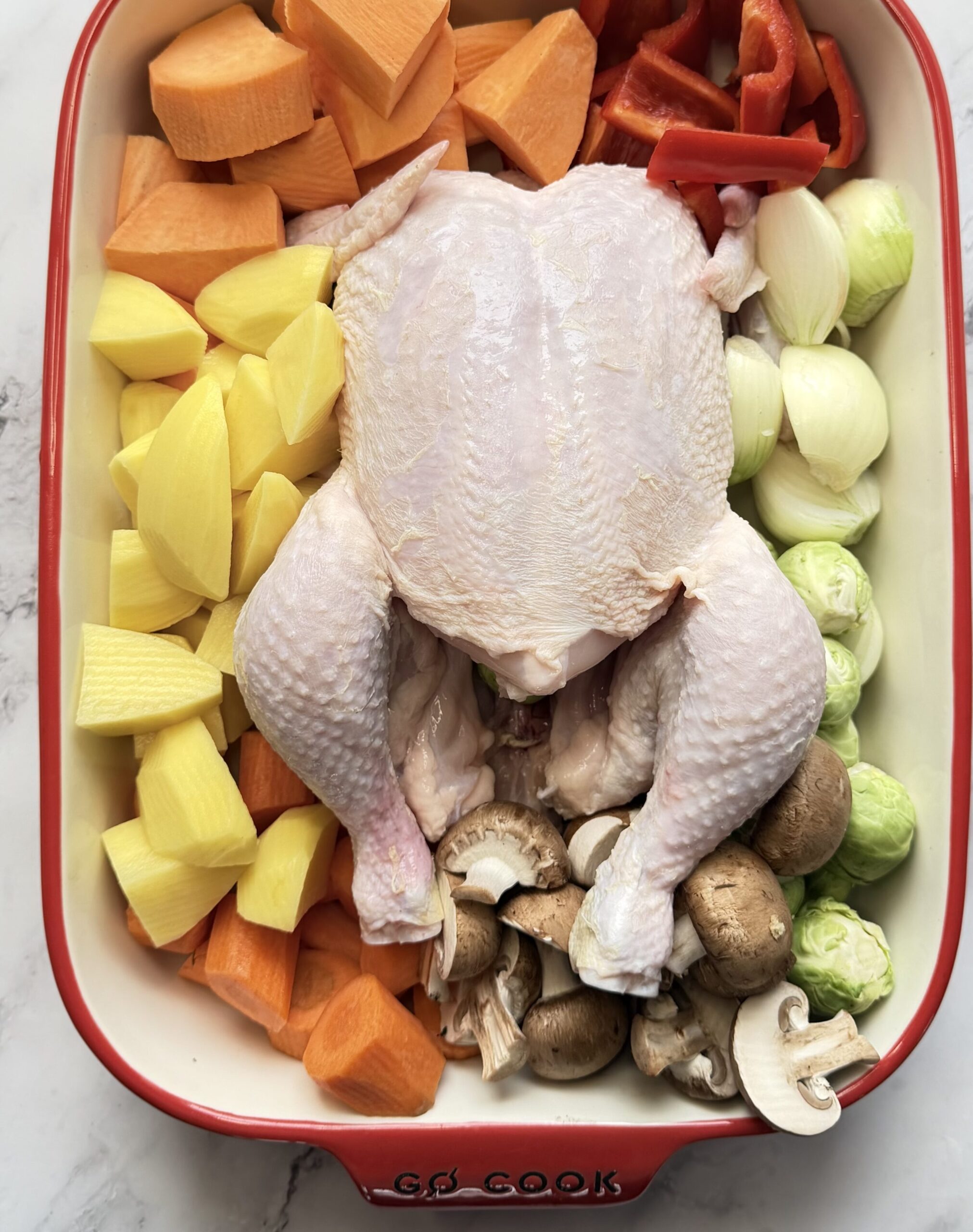 Pečené kuře z jednoho pekáče je přesně ten typ jídla, který patří k rodinnému stolu. Jednoduché, srozumitelné a postavené na opravdových surovinách – celé kuře, sezónní zelenina a pár základních koření. Žádné složitosti, žádné polotovary.