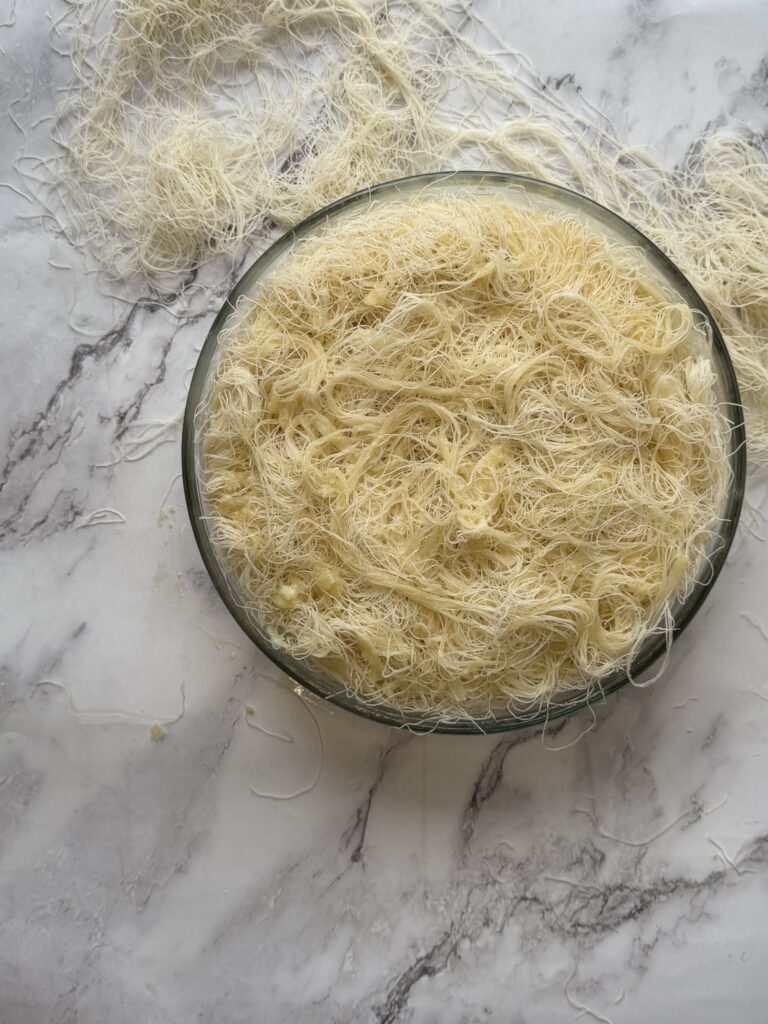 Krém musí být hladký a ne příliš hustý – po vychladnutí ještě zpevní. Kataifi nikdy nemačkejte, vzduch mezi vlákny je klíčem ke křupavosti. Sirup lijte rovnoměrně, ne všechen najednou na jedno místo.