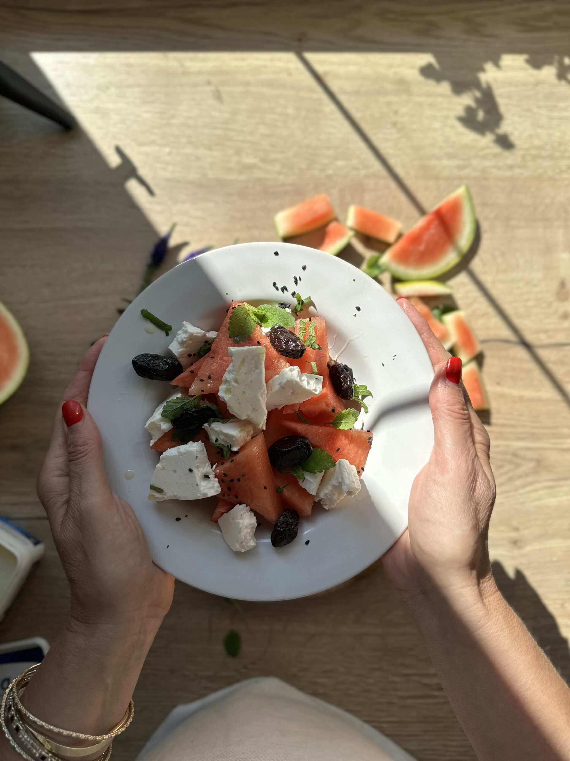 Melounový salát s fetou a olivami