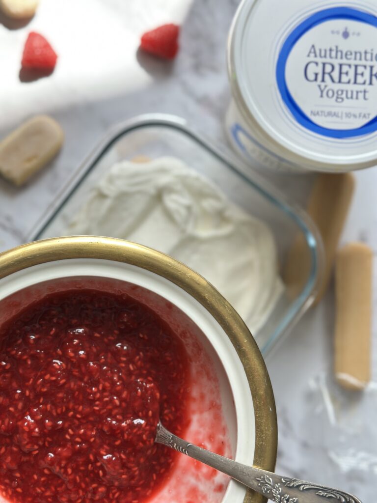 Klíčem k úspěchu je tučný řecký jogurt, a právě tento famózní jogurt najdete ➡️ http://eliesfood . Díky němu je krém sametově jemný, není to dezert který nakrájíte na kousky, potřebujete jen velkou lžíci a odvahu ji umět ve správný okamžik zastavit.V kombinaci s malinami a piškoty dostane jednoduchá skládačka chuťovou hloubku, která překvapí.