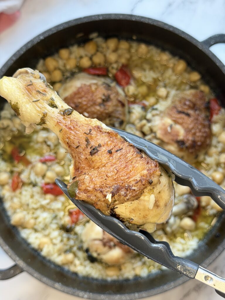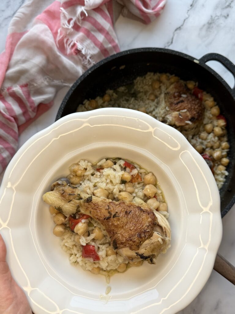 Pečené kuře s rýží a cizrnou je zimní jídlo. Když píši tento recept, právě se kutálí sněhové vločky k zemi, je zataženo a tedy ideální čas přichystat k obědu něco hřejivého. Jak je známo, v zimě je potřeba větší množství energie, něco, co nás zasytí a zároveň zahřeje, a právě luštěniny se řadí do kategorie hřejivých potravin.