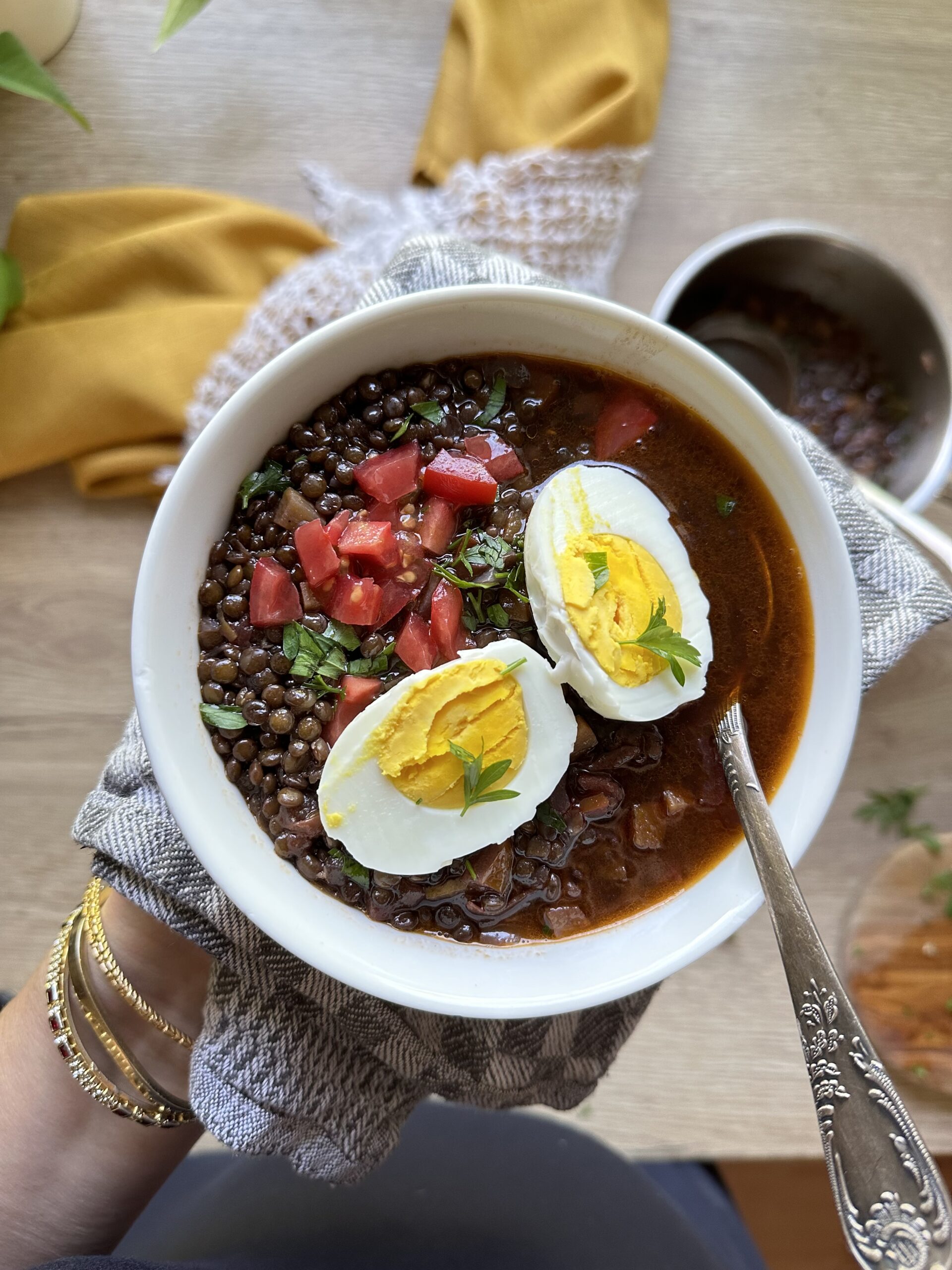 Ve středomořské kuchyni se luštěninové polévky běžně podávají jako hlavní chod. Bývají velmi husté. Černá čočka má větší nutriční hodnotu než ostatní luštěniny, je velmi bohatá na vlákninu a právě proto stojí za to ji zařadit do našeho jídelníčku.