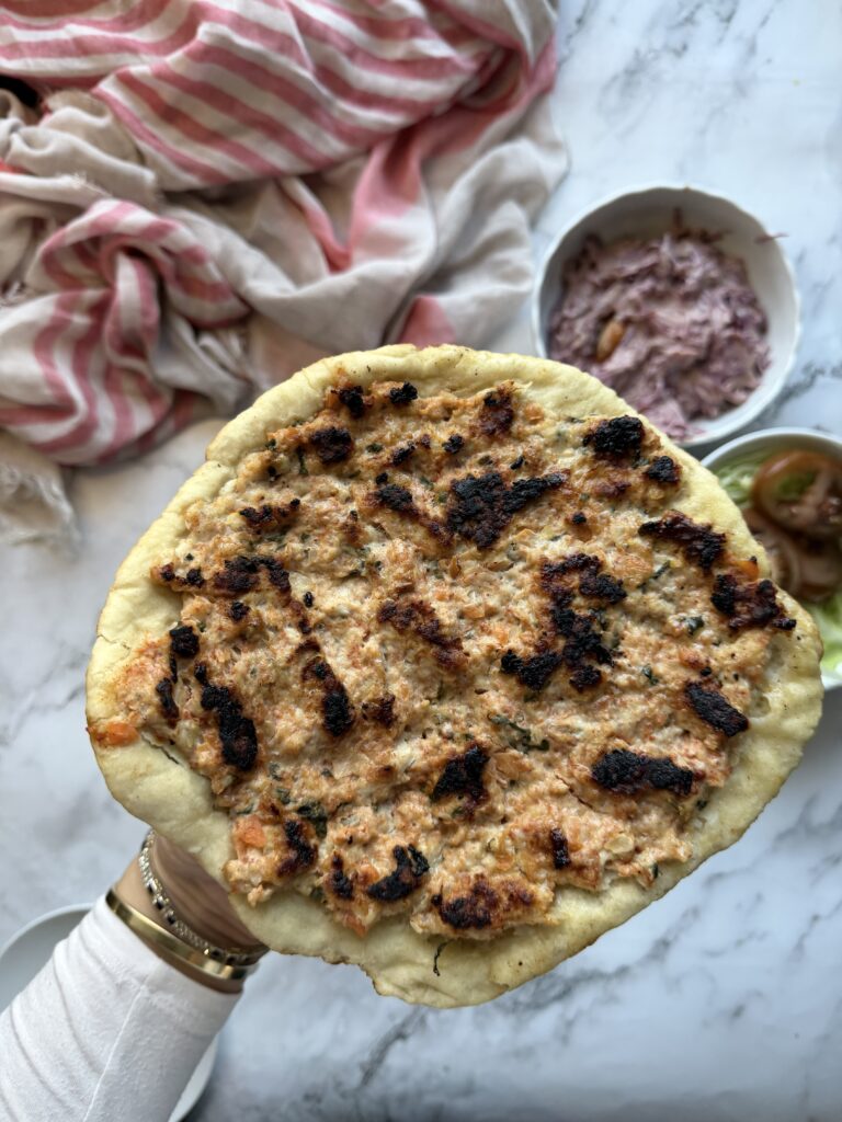 Tohle je přesně ten typ jídla, který vzniká ve středomořských domácnostech spontánně. Nekynuté placky, jednoduché kořeněné maso a pánev místo trouby. Rychlé, syté a přizpůsobené běžnému dni.
