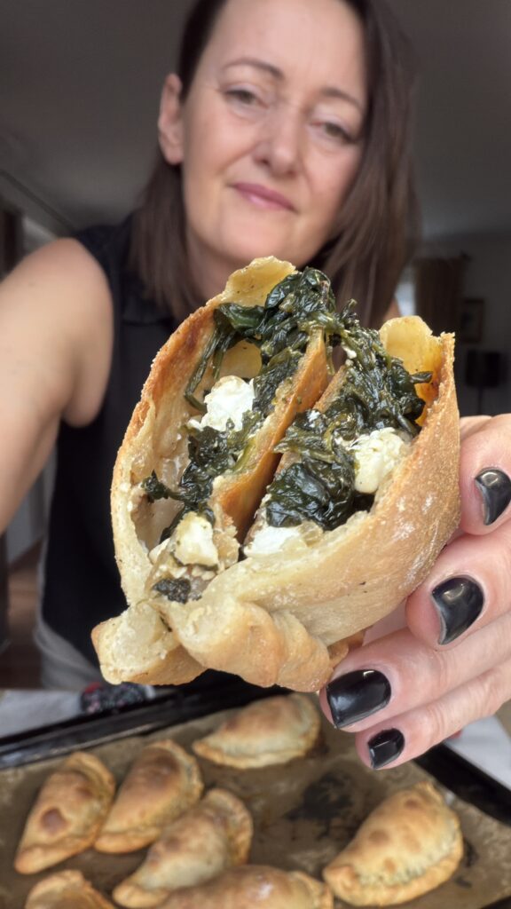 Taštičky plněné špenátovými listy a fetou jsou jedním z nejoblíbenějších pokrmů v Řecku. Čerstvé špenátové listy a sýr feta jsou absolutně nejlepší, neoblíbenější, vyváženou kombinací zeleniny a sýru feta. Železitá chuť špenátu a pikantnost fety rovná se kamarádi na věky. Těsto, které jsem dnes použila, je velmi rychlé a snadné, držte se jednoho pravidla, (ostatně v mých receptech je opakuji stále) použijte jogurt řeckého typu s minimálním obsahem 10% tuku, je hustý a obsahuje jen malé množství syrovátky. V případě ze použijete jiný, určitě upravte množství mouky.