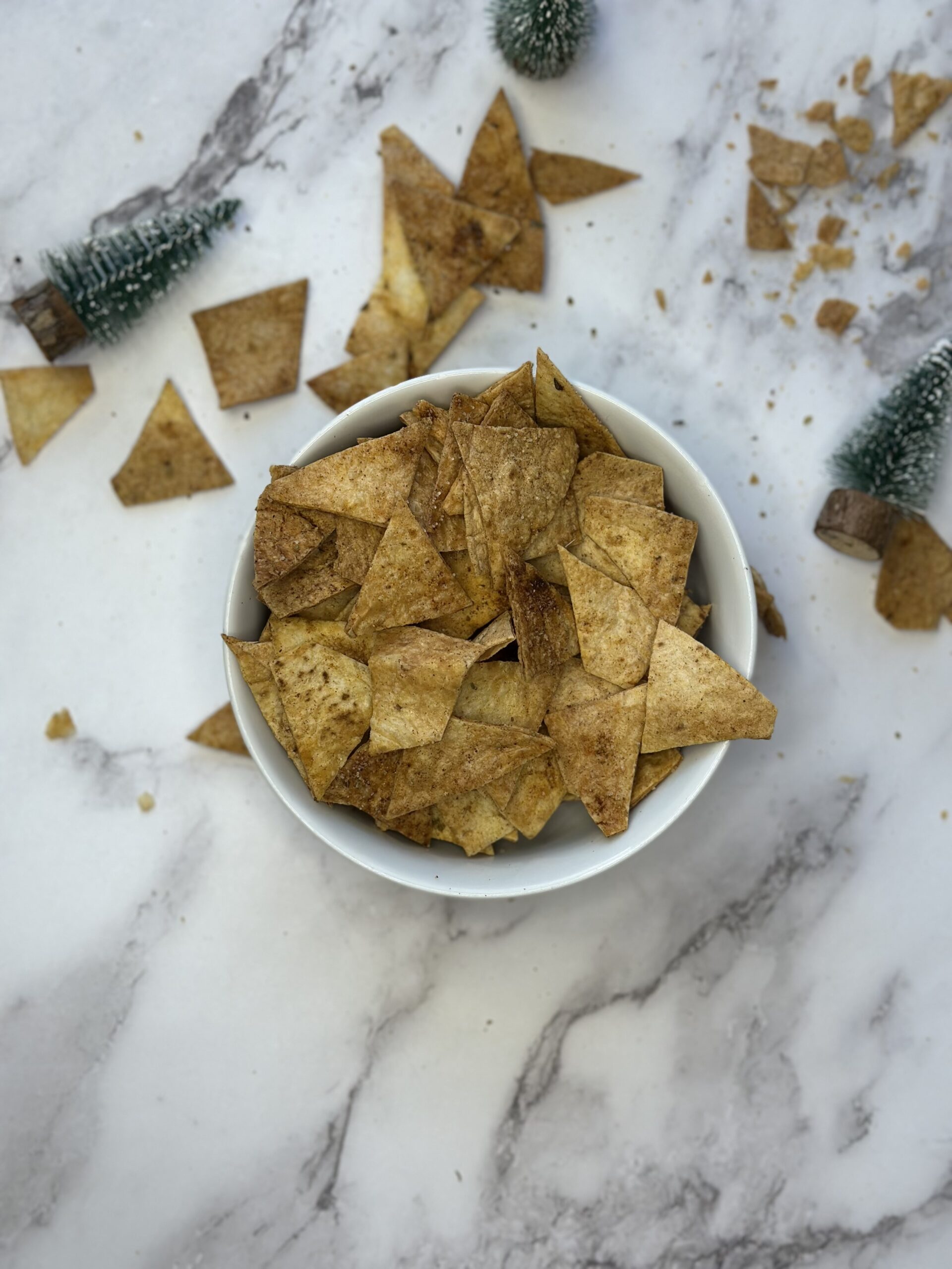 *2 velké tortilly nastříhané na malé trojúhelníky