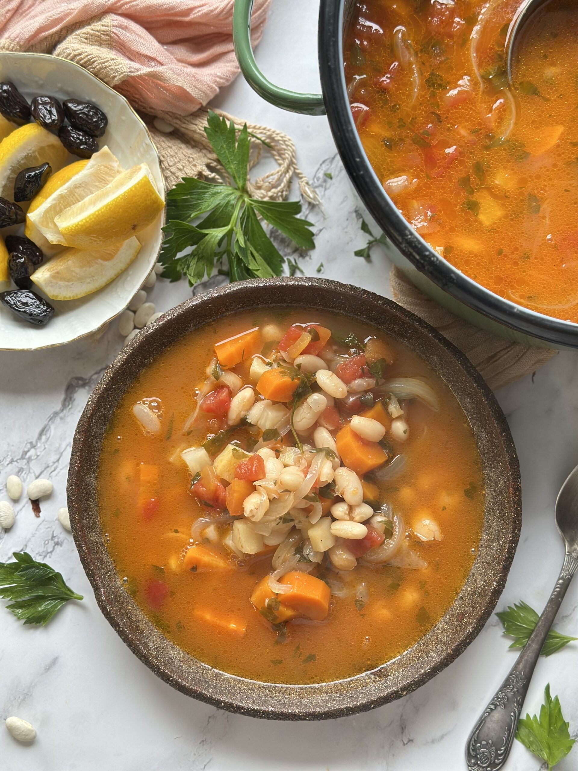 Řecká fasolada je víc než polévka – je to jídlo, které se v Řecku podává jako hlavní chod. Hustá, voňavá, sytá a přitom plná lehkosti. Patří mezi nejtradičnější pokrmy středomořské kuchyně a dokonale vystihuje její filozofii: jednoduché suroviny, čistá chuť a spousta olivového oleje.
